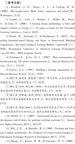 与标准化的教学设计相比,学习设计的定制需要应对更复杂的教学环境(如混合式环境、虚拟环境等)。同时,教学过程的动态化决定了教学阶段存在诸多的可变性。因此,仅在学习设计中嵌入新的技术是不够的(Kakati,2002)。如要发挥新的流程和技术的潜力,设计者必须适当地对技术加以改造和应用。学习分析正是具有这一潜力的嵌入性技术,能够通过基于数据的总览性描述和分析,推动个性化学习的实现(顾小清等,2016)。