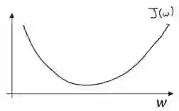 假定代价函数(成本函数)J(w)只有一个参数 w,即用一维曲线代替多维曲线,这样可以更好画出图像。