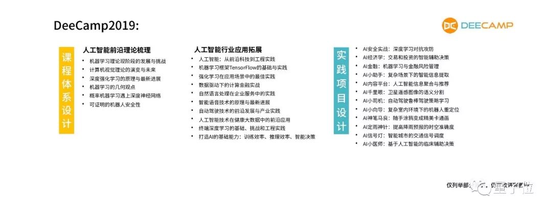 产业课:TensorFlow框架基础与实践、强化学习的应用、计算金融、NLP/自动驾驶/健康大数据相关实践课程。