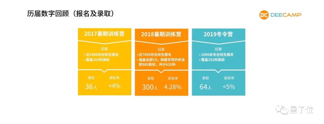 从2017年的夏天开始,DeeCamp现在已经走到了第三年,整体录取率约在4%左右。