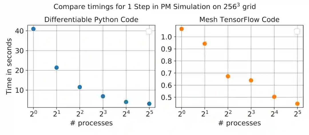 三十多年来,我们的宇宙数值模拟已成为大尺度结构宇宙学的骨干技术。借助 FlowPM,我们正在迈出第一步,将此类模拟与深度学习组件集成到一个统一框架内,同时保持对基本现象的精准物理认知。在宇宙学中,这两者的结合为开发全新分析工具以及在迄今难以解决的领域中实现建模开启大门。这些是活跃的研究领域,随着新一代宇宙学测绘的临近而变得越来越紧迫,因为届时需要观测在十年交替时宇宙中即将显现的上千万个物体。借助 Mesh TensorFlow 的模型并行框架,物理建模和机器学习相结合的可能性变大,并且我们希望使用 FlowPM 开发的组件分析和计算工具也能使使宇宙学以外的其他学科的大尺寸科学应用受益。