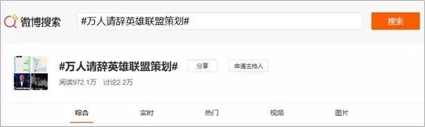 11 月 6 日,微博上甚至出现了一个#万人请辞英雄联盟策划#的话题。