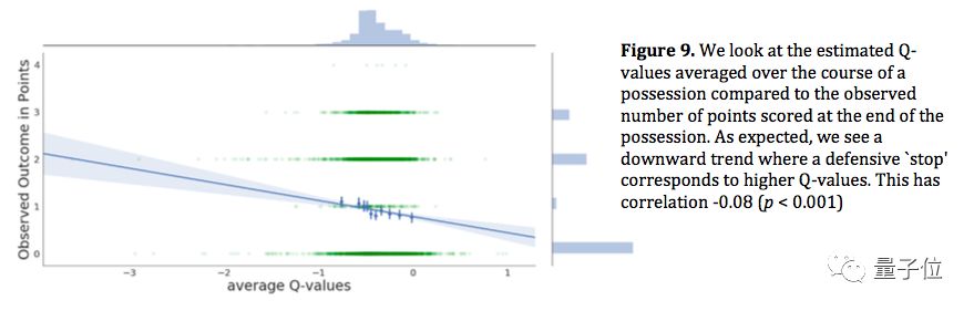 结果发现,模型输出的Q值越大,被包夹的一方得分越低,这说明该轮防守效果越好。