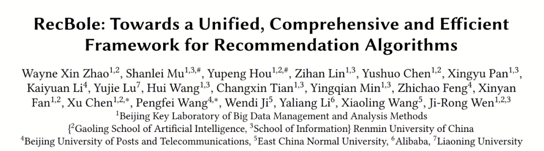 [1]Wayne Xin Zhao, Shanlei Mu, Yupeng Hou, Zihan Lin, Kaiyuan Li, Yushuo Chen,Yujie Lu, Hui Wang, Changxin Tian, Xingyu Pan, Yingqian Min, Zhichao Feng,Xinyan Fan, Xu Chen, Pengfei Wang, Wendi Ji, Yaliang Li, Xiaoling Wang, andJi-Rong Wen. 2020. RecBole: Towards a Unified, Comprehensive and Efficient Framework for Recommendation Algorithms. arXiv preprint arXiv:2011.01731(2020).