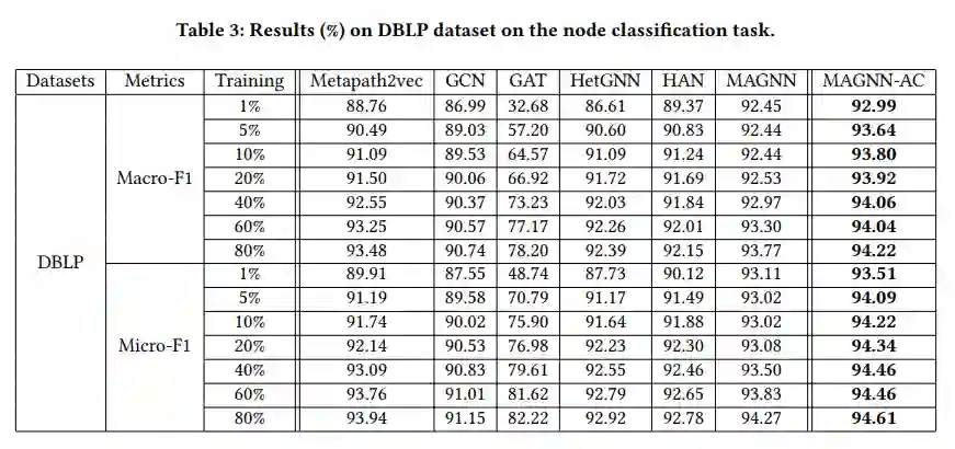 本文发现,面对异质网络中复杂的属性缺失情况,与专注于设计新模型的传统研究方向相比,属性补全变得尤为重要,并且可以成为一个全新的、更有效的提升性能的方向。本文首次科学地对异质网络中的缺失属性进行了补全,并提出了通用的框架来解决异质图神经网络模型中面对的属性缺失问题。具体地,在该框架中,首先基于面向元路径的高阶拓扑信息来挖掘节点间关系,并将其作为节点之间语义关系的先验知识。接着为节点属性的补全提供了一种具有先验信息指导的、有效的注意力机制,并通过随机删除属性来实现弱监督损失的定义,从而使属性补全成为在先验知识指导下合理的可学习过程。最终在同一图神经网络框架下定义了属性补全过程和目标任务,以构建任务导向的端到端框架,实现两者的相互增强。该框架可与多数异质图神经网络模型正交,为这些模型带来稳定的性能提升。本文也希望这种新观点能够为现有的基于图神经网络的异质网络研究提供一个新的、有效的方向。