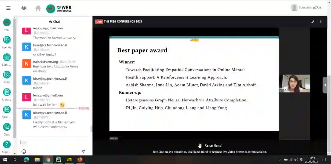 WWW(现改名为TheWebConf)会议是万维网领域的顶会,由图灵奖得主Tim创办,被中国计算机协会将其认证为CCF-A类会议,每年举办一次。本届WWW共计收到1736篇投稿,录用357篇论文,录用率为20.6%,其中评出最佳论文奖冠亚军各一篇。