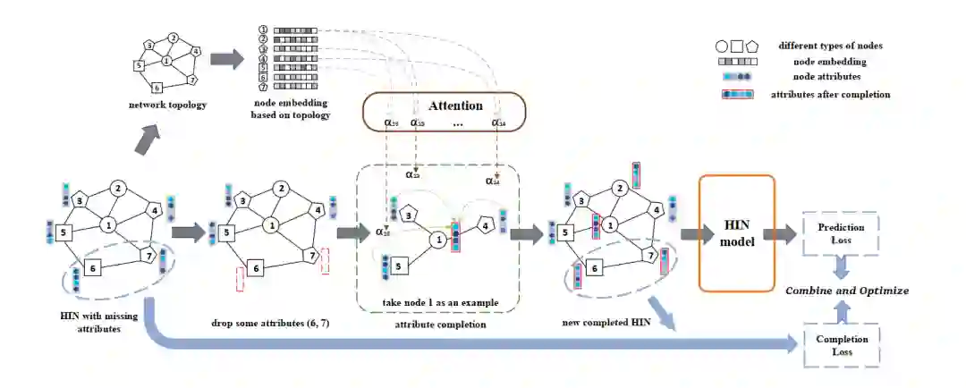 异质信息网络(HINs)也称为异质图,它是一种由多种类型的节点和边组成的复杂网络,包含了全面的信息和丰富的语义。图神经网络(GNNs)作为处理图结构数据的强大工具,在网络分析任务中表现出了卓越的性能。最近相继提出了许多基于图神经网络的异质图模型,并取得了巨大的成功。图神经网络旨在通过节点属性间的传播和聚合操作来完成图表示学习任务,因而完备的节点属性是算法运行的必要前提。
