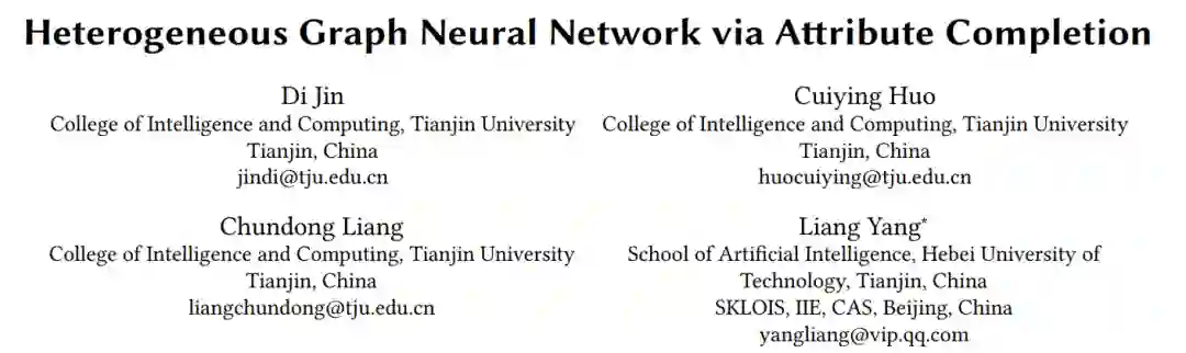 WWW-2021最佳论文奖(亚军)来自天津大学金弟副教授团队。该研究原创性的提出了异构信息网络属性补全问题及其高效求解方案。该方案正交于已有异构图神经网络框架,并在多个真实世界的异质数据集上取得了优秀的结果。
