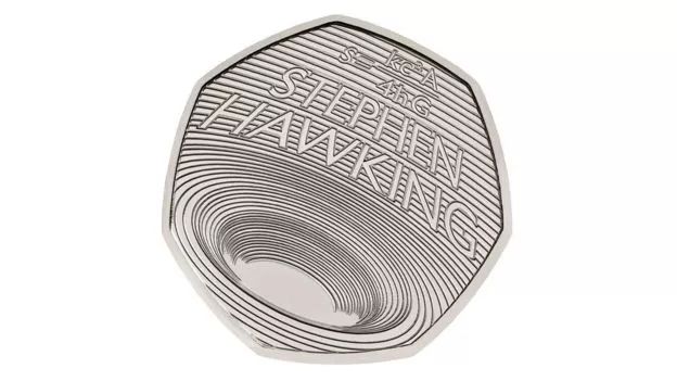 0、印有霍金与黑洞主题图案的 50 便士纪念币正式发售