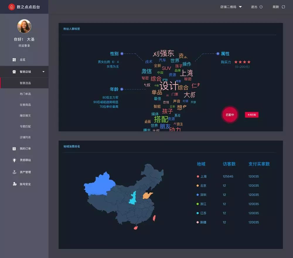 在他的坚持下,去年年底,他终于说服了陈百兴。今年,陈百兴带领团队,用3个月时间就开发出“数之点点”系统,其展示界面为PC端后台端。