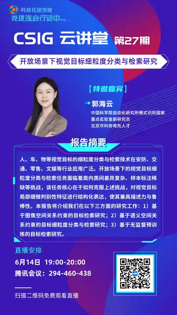 请添加会议官方微信:CSIG_1990,备注“云讲堂”获取入群邀请