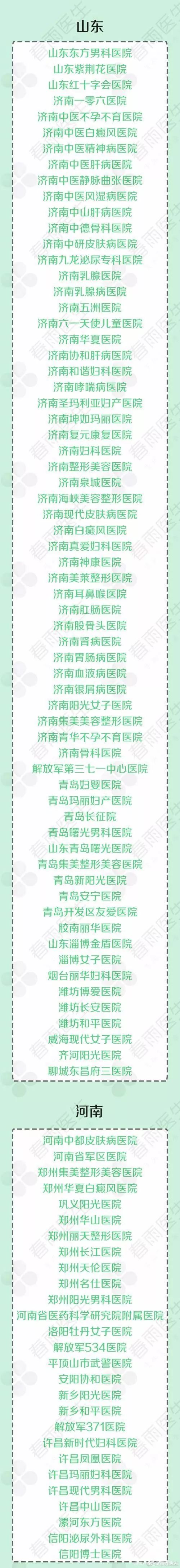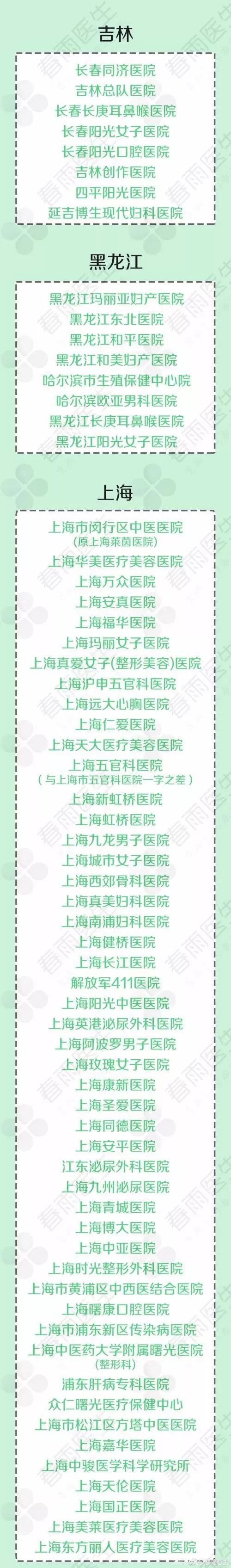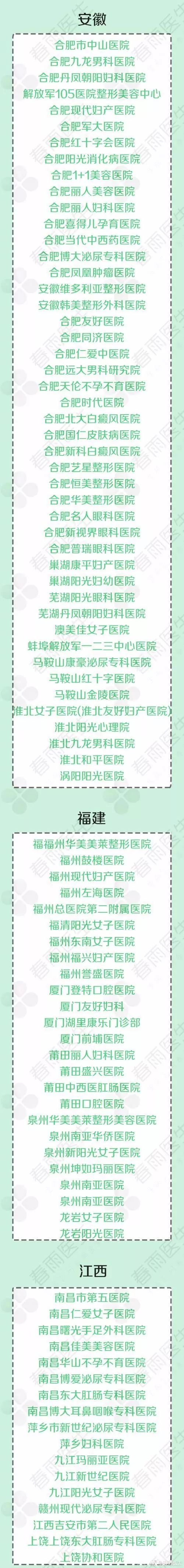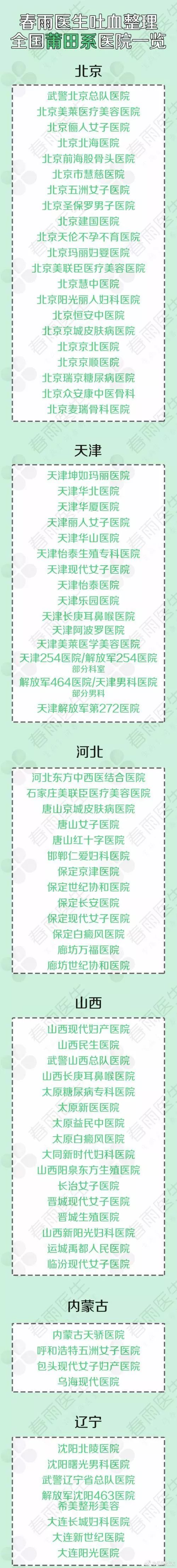 以下为春雨医生此前发布的全国莆田系医院名单,名单均来自春雨医生,仅供参考(特别备注:不排除里面包含非莆田系医院,比如一批曾经外包科室现在已经整改的医院)