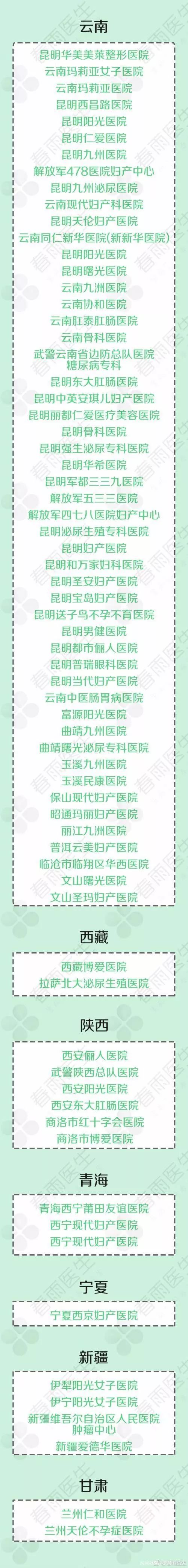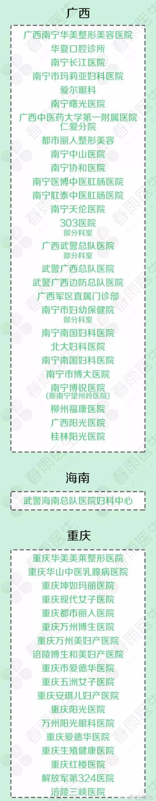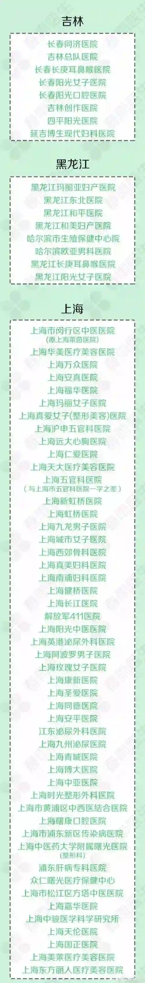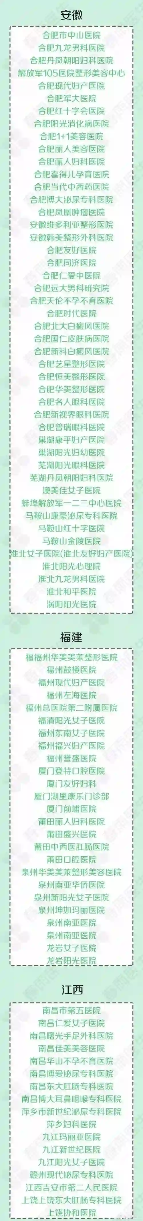 以下为春雨医生此前发布的全国莆田系医院名单,名单均来自春雨医生,仅供参考(特别备注:不排除里面包含非莆田系医院,比如一批曾经外包科室现在已经整改的医院)