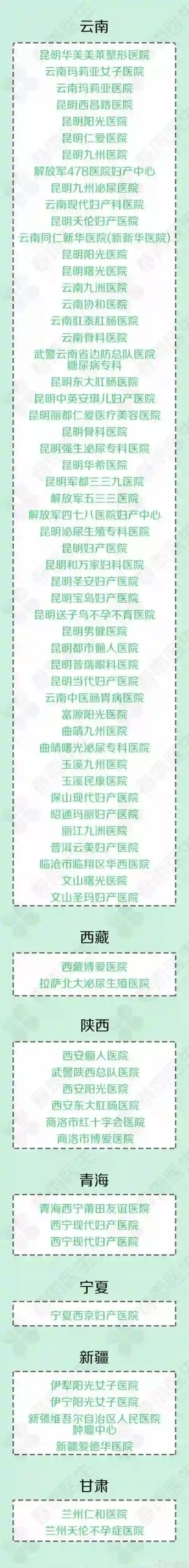 根据春雨医生整理的这份名单,莆系医院主要分布在我国30个省、自治区、直辖市。其中宁夏最少只有一家,比较多的省、市有上海、江苏、安徽、广东、云南、四川、山东等。