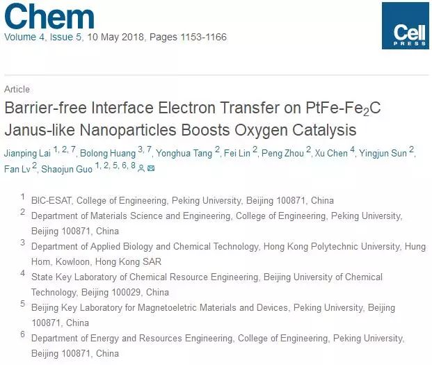 近日,Cell出版社的旗舰期刊Chem在线发表了工学院郭少军课题组关于高性能FePt-Fe3C 界面低铂燃料电池电催化剂研究的最新进展。