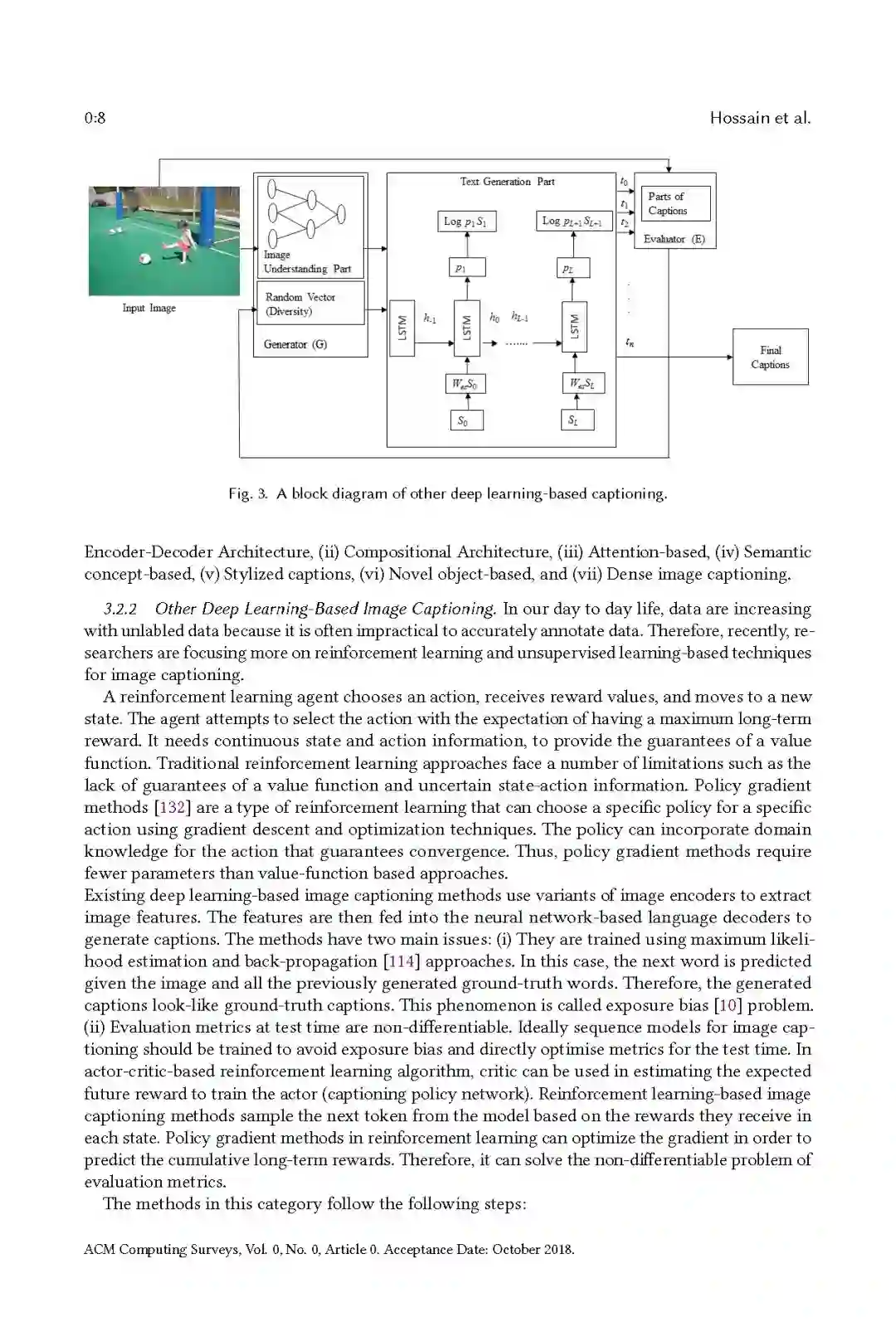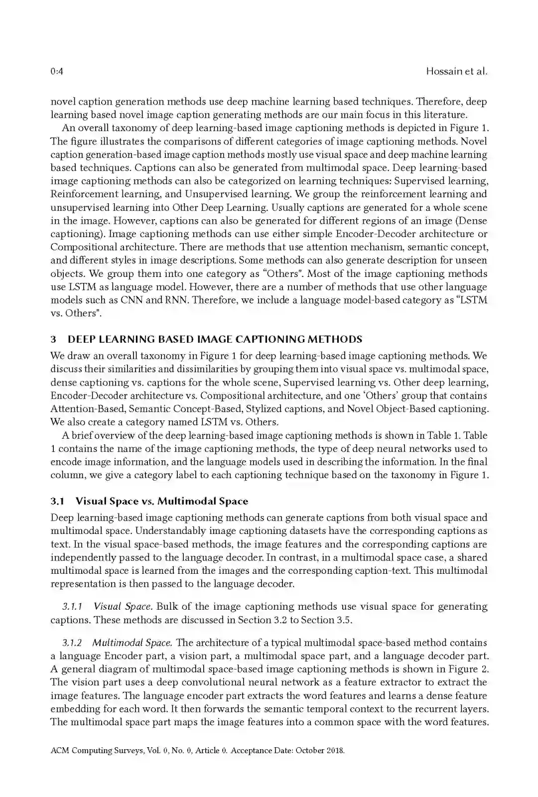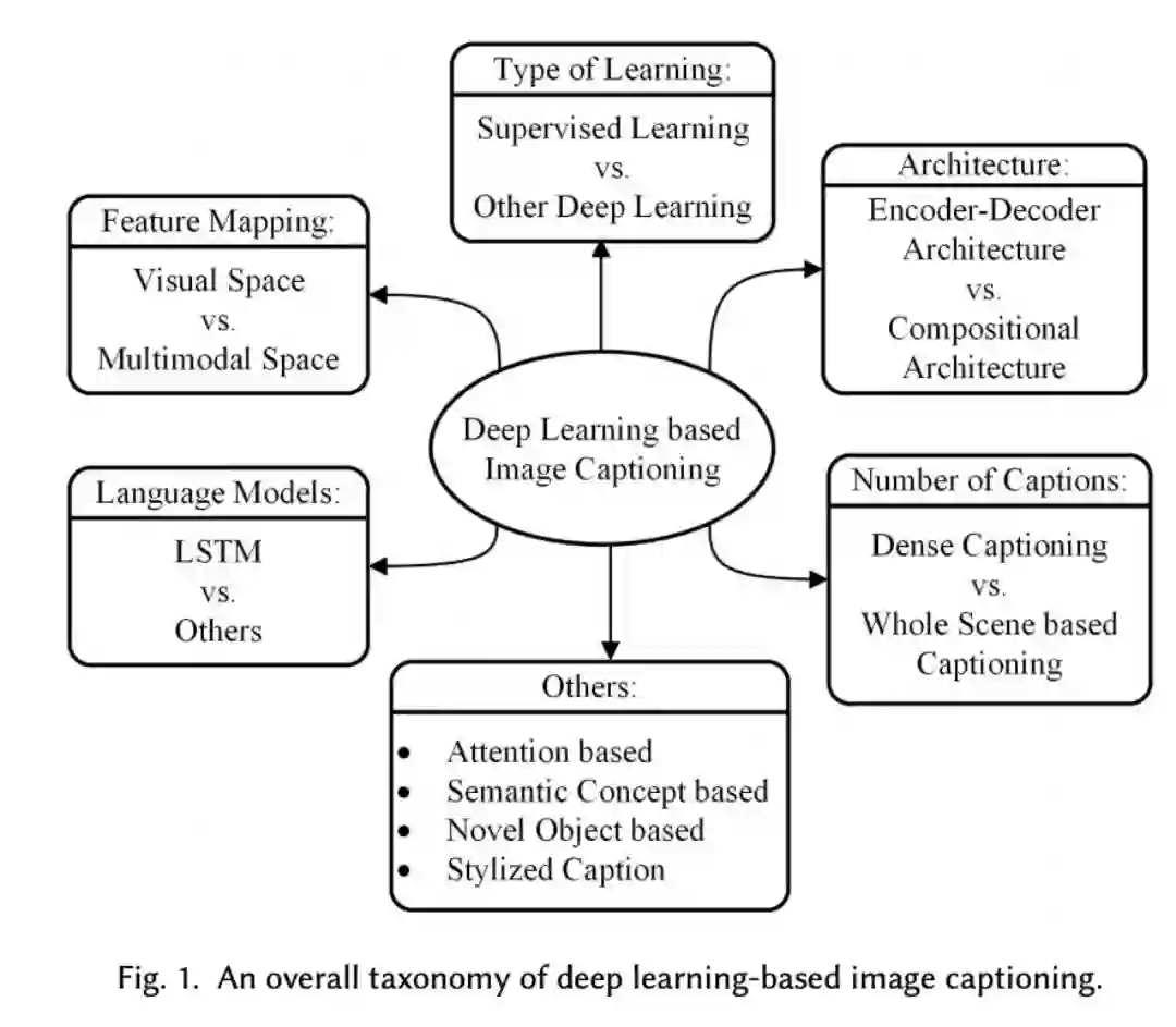 这些类别将在文章中第2节中进行简要讨论。大多数基于深度学习的图像描述生成方法都属于第三类别。这篇综述只关注基于深度学习的图像描述的生成。