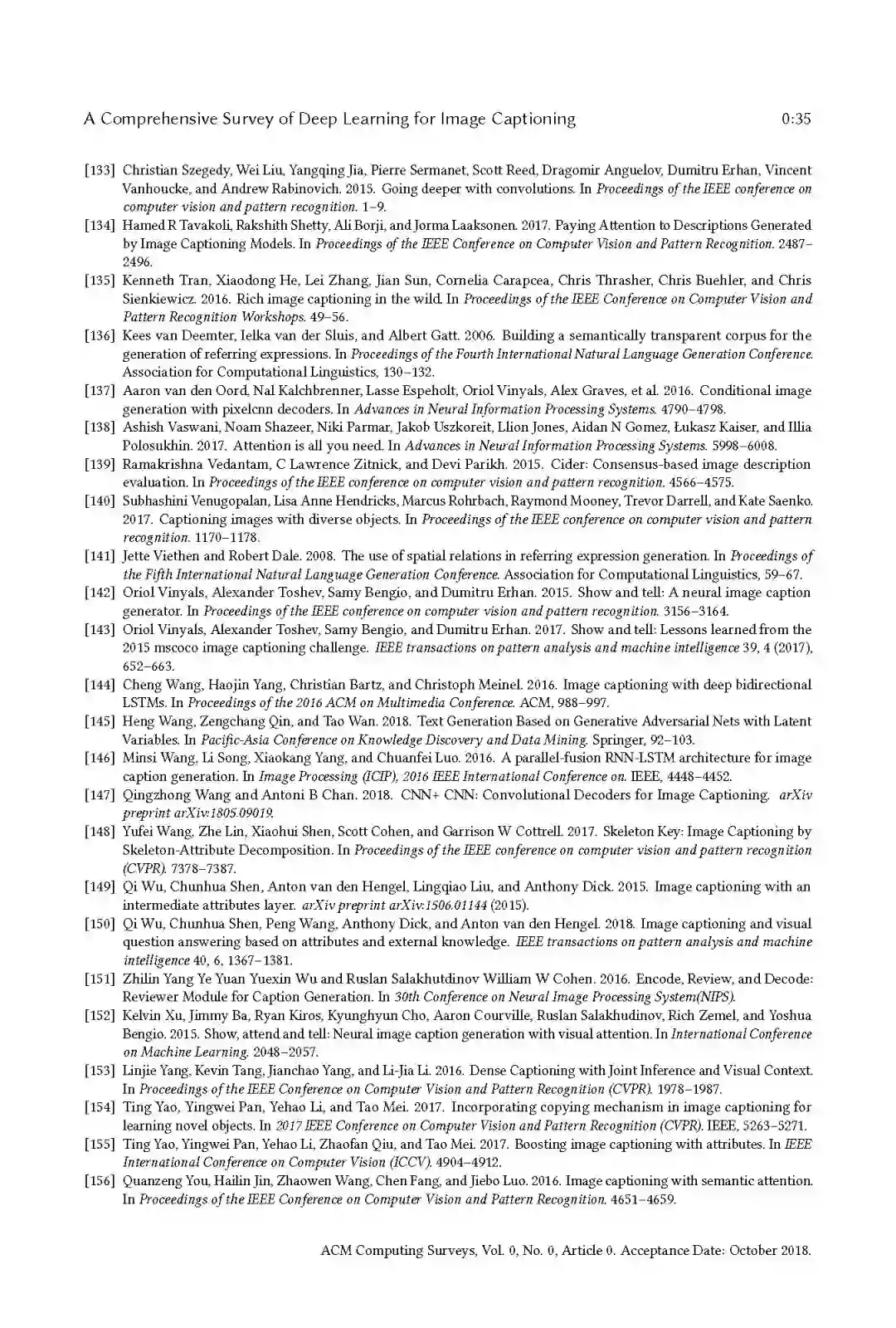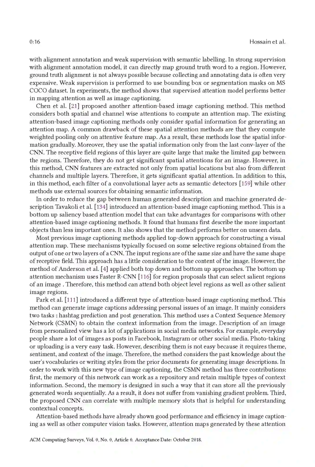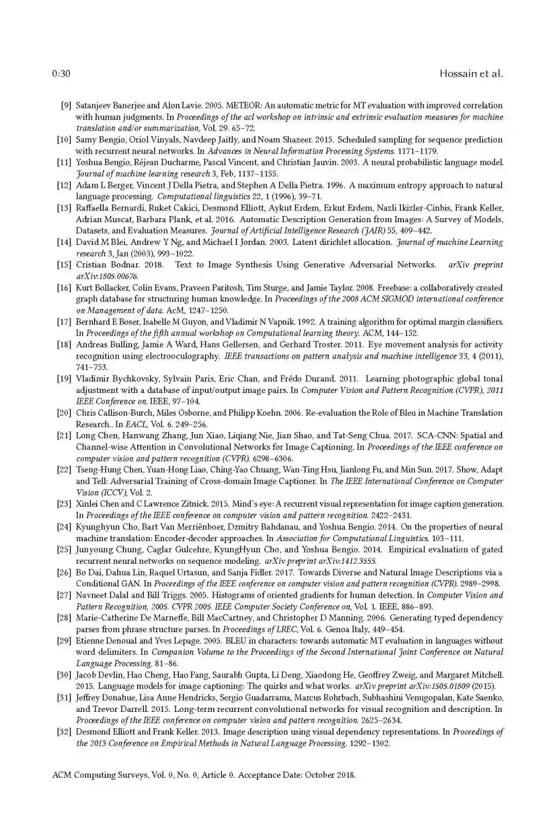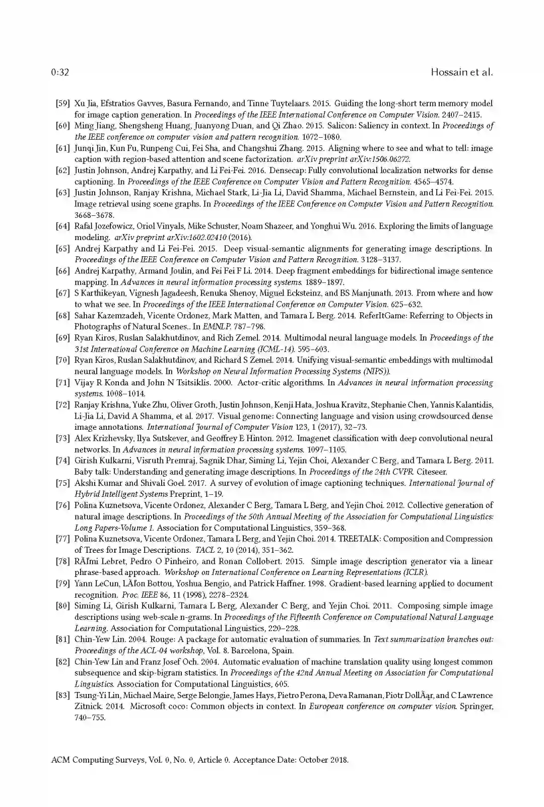 近5年来,大量关于深度学习图像描述生成的文章被广泛使用。深度学习算法能够很好地处理图像描述生成的复杂性和一系列挑战。到目前为止,只有三篇关于这个方向的综述论文(8,13,75,见论文)发表。虽然这些论文对图像描述生成进行了很好的文献综述,但由于大部分论文只覆盖少量关于深度学习的论文。这些综述论文主要讨论了基于模板、基于检索、基于深度学习的图像描述生成模型。然而,在基于深度学习的图像描述生成方面,研究者们已经做了大量的工作,并且还有好多新数据集的使用,当前暂时还没有一个全面的图像描述生成的综述。