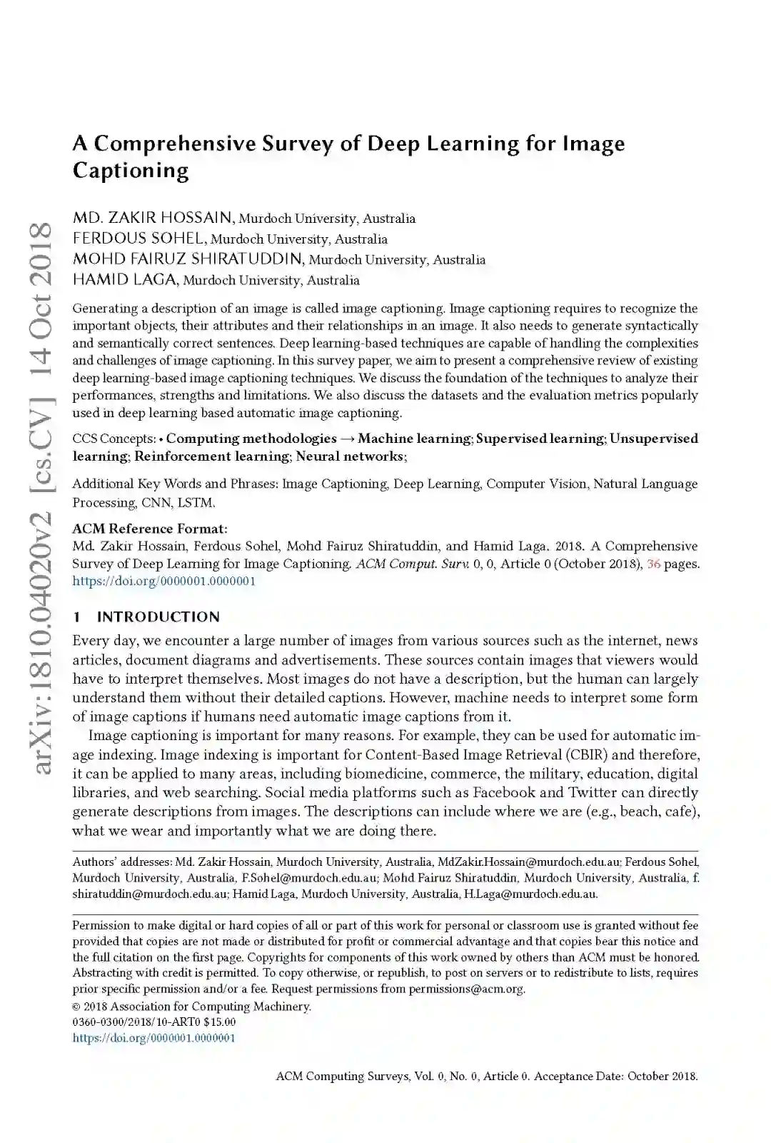 题目: A Comprehensive Survey of Deep Learning for Image Captioning