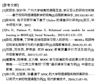 MOOC评价指标体系也日益受到关注。西班牙的“MOOC教育质量综合评价指标体系”涉及学习方法、接纳性层级、虚拟课堂环境、学习成效、就业认可等方面,比较全面、客观地评价了MOOC教育[5]。文献《MOOC学习困境的形成因素分析及改进策略———以江苏三所高校“尔雅”通识课学习者为例》[6]通过对“尔雅”通识课学习者的调查,发现采用“MOOC+classroom=SPOC”开设课程时,人文关怀度低、证书承认度低等11种困境,将影响学习成效。同济大学在《普通物理》课程教学中开展了SPOC实践,从教师、学生和环境三个方面分析了影响教学效果的关键因素,以便学生适应全新的学习体验,促进他们协作探究、自身能力和学习成绩的提高[7]。