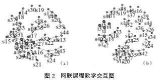 在网联课程这种“互联网+”课堂形式中,当教学交流不充分时,个别学生自然成为了分担教师角色的中间人,如图3(a)中的s9,s31,图3(b)中的s8,他们的网络约束系数分别为0.25、0.20和0.11。因连接多位学生形成班级网络中的结构洞,同时需注意到异地班级之间学生没有建立任何联系。