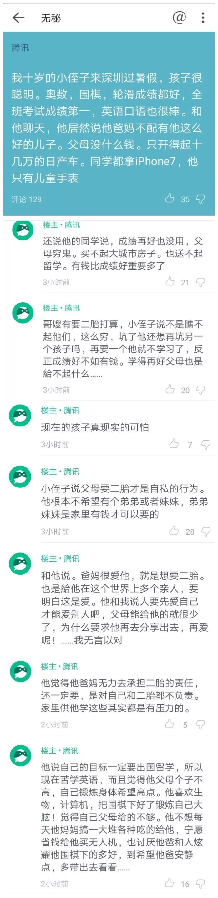 关于这种孩子,如果你问网友对此的看法,大部分人都会说:孩子看的很透彻,只不过说话太直白而已。但如果你再问:你愿意自己的孩子成为这样吗?绝大多数人都坚决摇头。