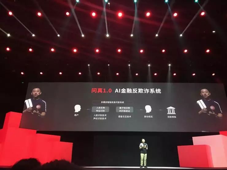 金融方面,做了名为“问真”的AI金融反欺诈系统。当顾客找金融机构贷款的时候,可以进行身份验证和真话鉴别。系统会自动问客户一些问题,根据回答的答案和系统答案是不是一致,就可以判断是不是真话。此外,还会用到人脸识别技术,识别是不是本人,是真实的才会进行贷款操作。