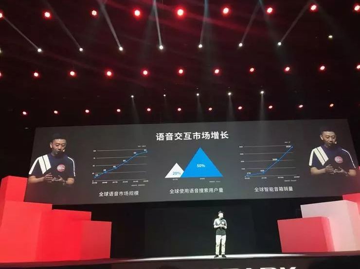首先,在数据增长方面,无论是用户的使用规模,比如语音搜索量,可能从现在的20%,未来变成50%。也就是说,未来每搜十次搜索引擎的时候,有5次是语音的交互方式。不一定是在手机上,可能是在音箱上,也可能在车里,都是用语音交互做。但是主要是为了搜索内容。包括智能音箱市场从无到有,现在全球市场规模达到了几千万。