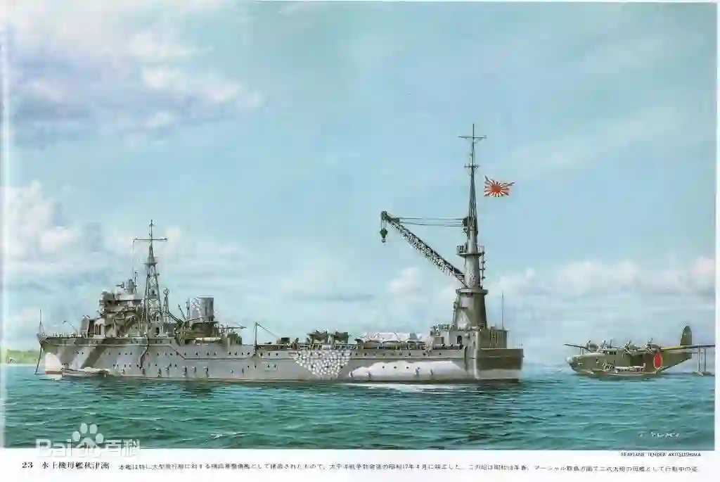 秋津洲号水上飞机母舰,可以明显看到吊臂(来源见水印)