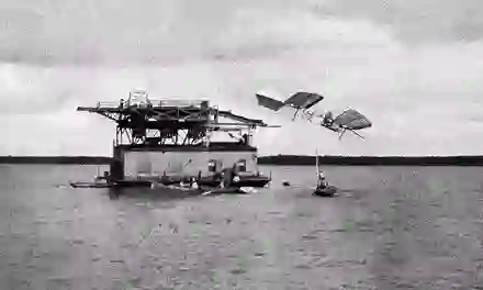 1903年10月7日兰利试飞载人飞机失败(来源:维基百科)