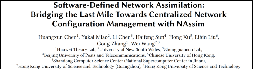 SIGCOMM(Special Interest Group on Data Communication,数据通信专业组)是美国计算机协会 ACM(Association for Computing Machinery)组织的通信网络领域的顶级旗舰会议,每年吸引全球近千名网络与通信领域的顶级专家参加,拥有极高的学术地位。据了解, 本届会议共 281 篇投稿论文,接收 55 篇,接受率约为 19.57%。《Software-Defined Network Assimilation: Bridging the Last Mile Towards Centralized Network Configuration Management with NAssim》是