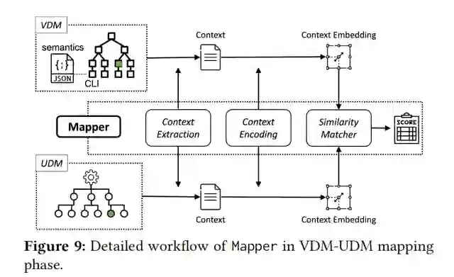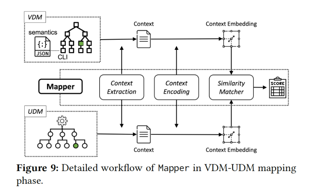 如上图 9 所示, 映射器的工作流程分为三个步骤:配置语义上下文提取,配置语义编码,和配置语义相似度计算和映射。