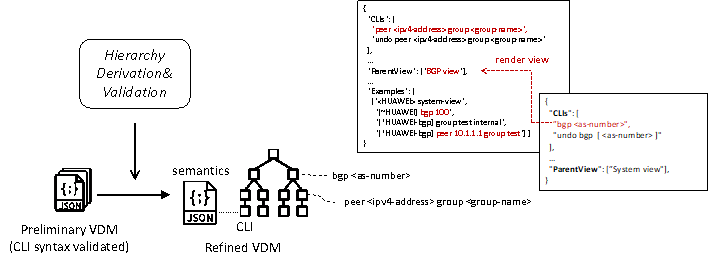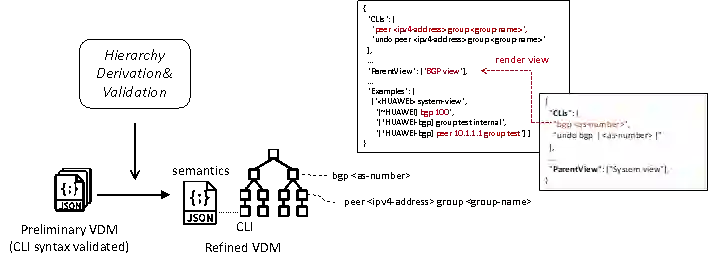 在命令互关系级层面,NAssim Validator 利用配置手册的配置样例推理出配置命令间的层级关系。