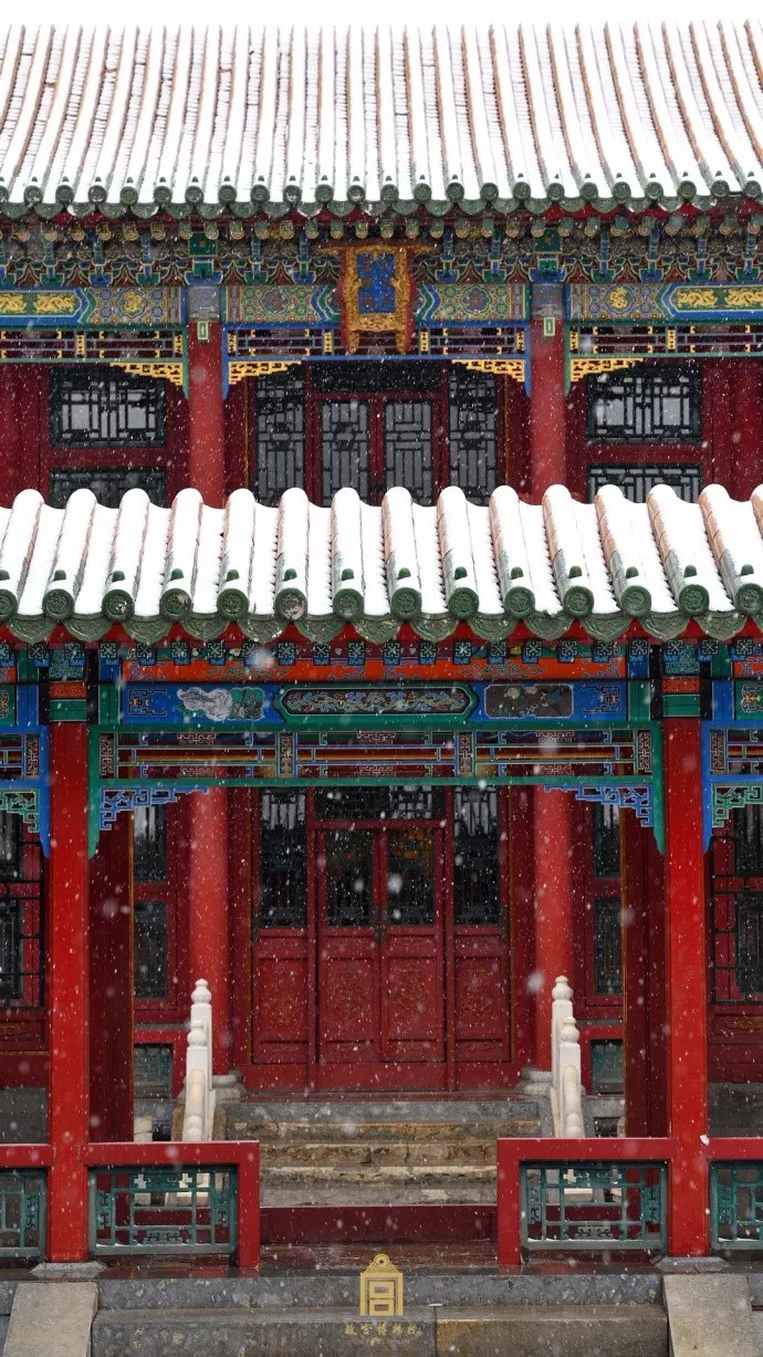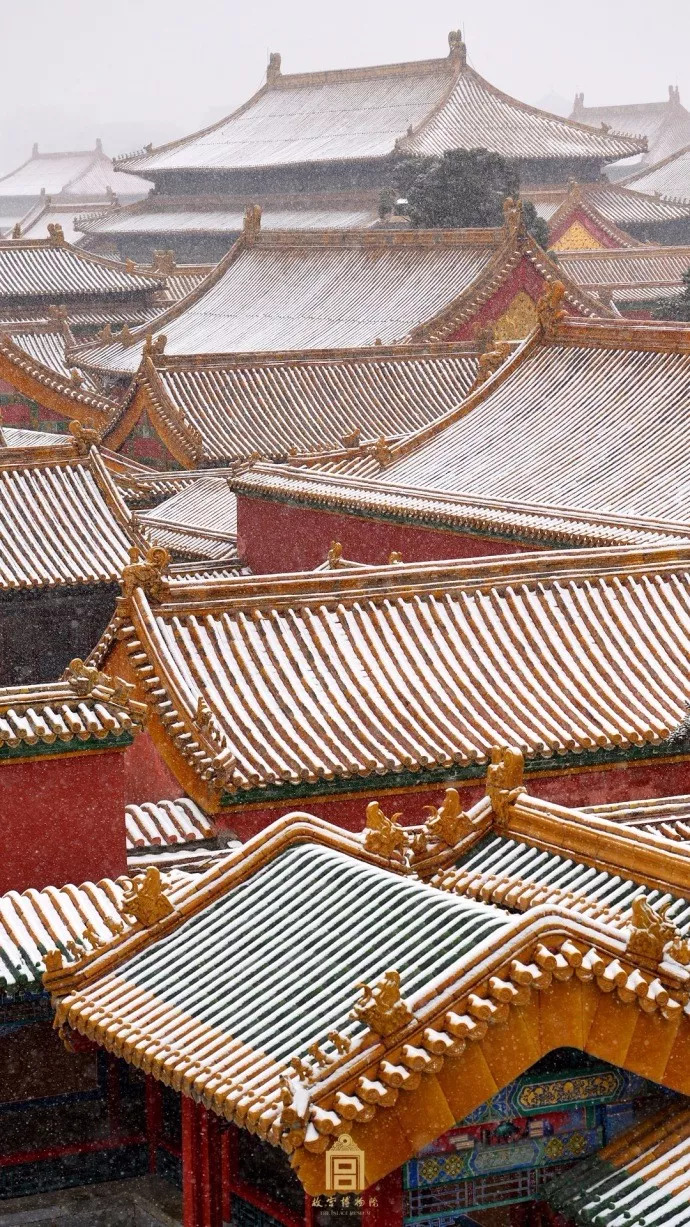 看飞雪中的碧瓦飞甍、雕梁画栋