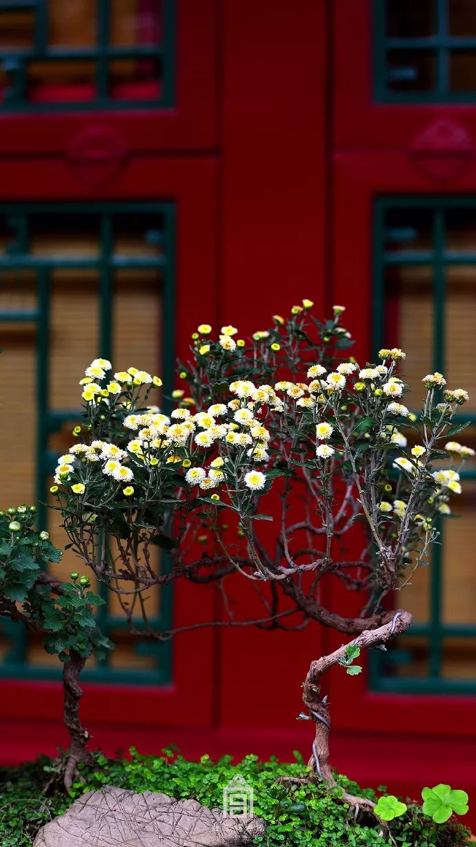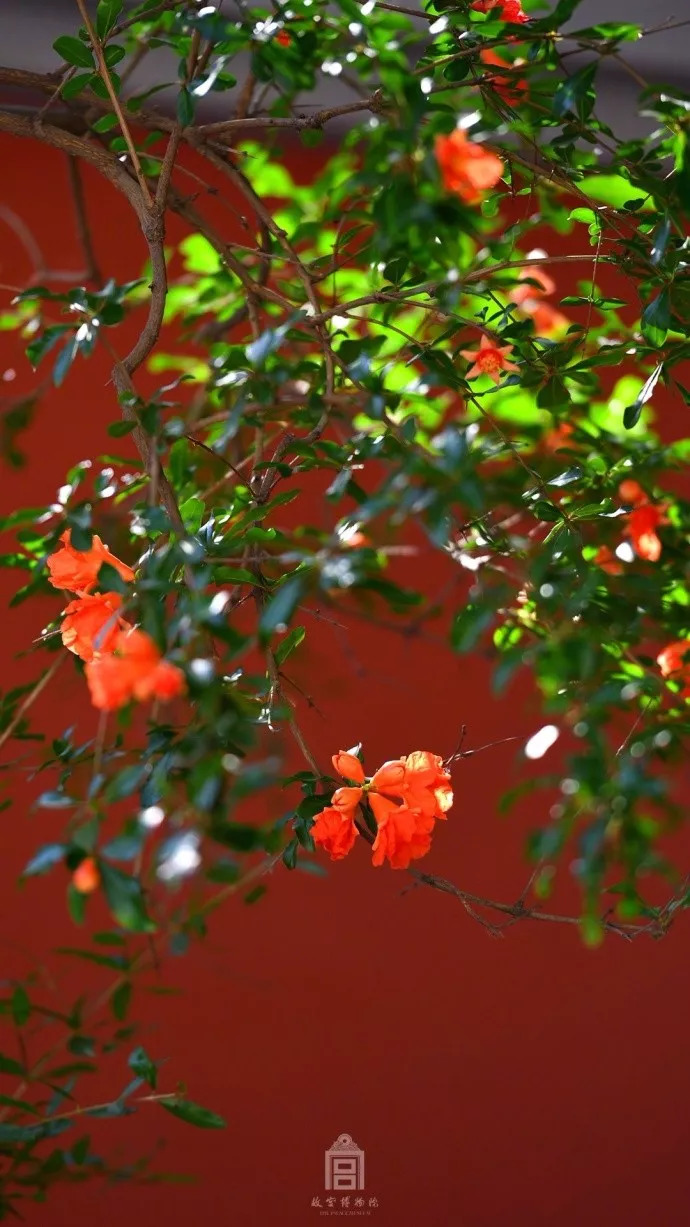 娇柔的花遇上朱红的墙