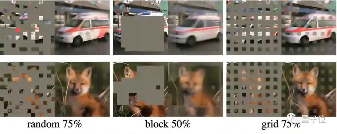 操作很简单:对输入图像的随机区块进行掩蔽,然后重建缺失的像素。