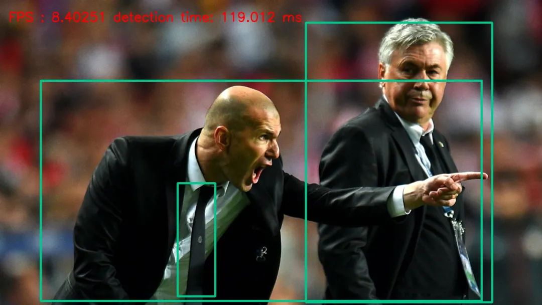 首先用YOLOv5的一张测试一下测试一下,基于YOLOX的小版本模型运行结果如下: