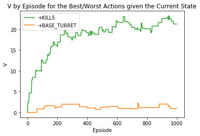因此,我们对人头和补兵的奖励都是最小值-0.05,而其它行动的奖励都在-0.05 和 0.05 之间随机生成。