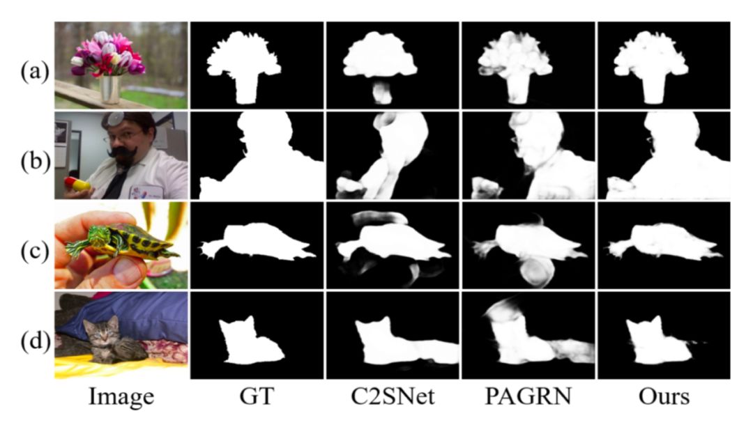 显著性物体的边界很混杂很难从周围背景中分辨出来,如 Fig1 的 (c) 和 (d)。