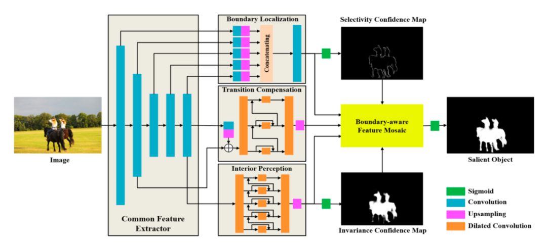 转变补偿分支的 M 的公式是比较有技巧的一个地方,整个检测分成了三个分支,如何综合利用,在选择性与不变性中权衡动态的地方,总体来说效果不错,但是暴力地分离边界必然导致计算的复杂,也是暴力美学的一种形式,因为文章标题与 BASNet 的相似,与其对比在所难免,是结构改变还是 loss 的计算改变更优雅更接近真理,其实很难断定。