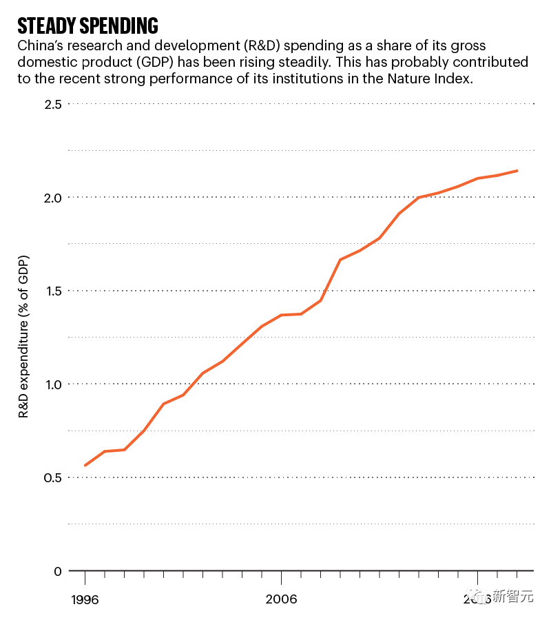 中国宁波诺丁汉大学科学政策研究员曹聪表示,中国政府在研发方面不断增长的投资是中国崛起的一个重要因素。整个2021年,科研投资占中国国内生产总值的2.4%。