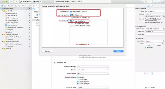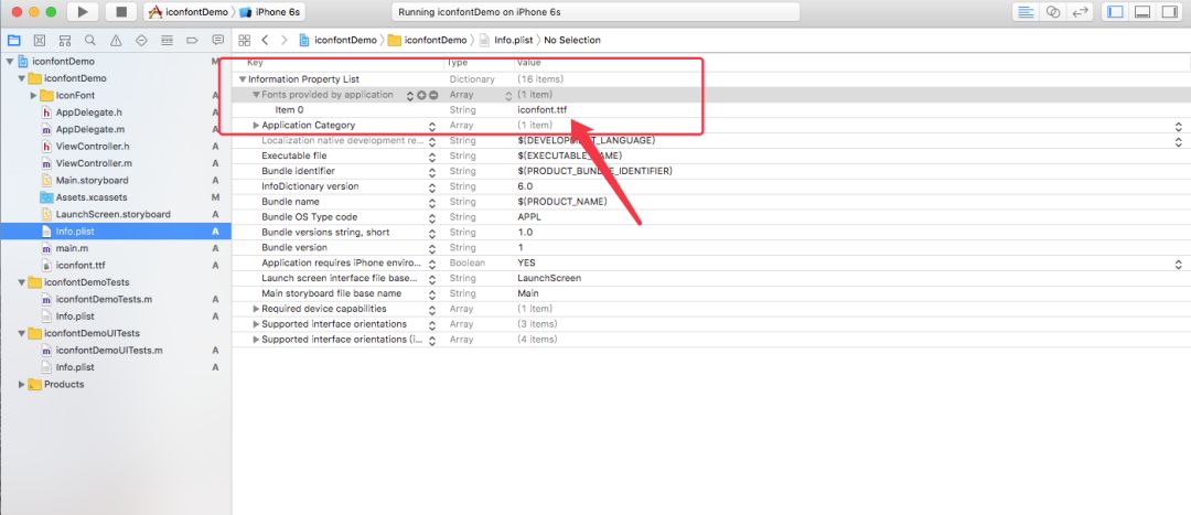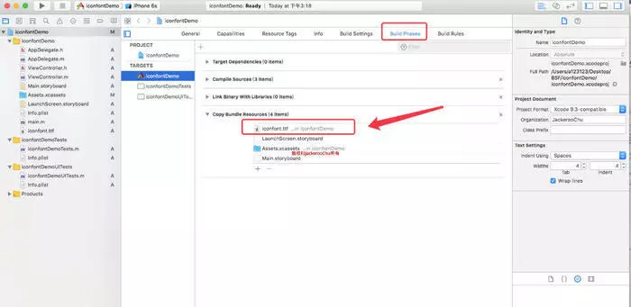 我们所需要的就是这个iconfont.ttf,对于这个ttf文件,我想我们并不陌生吧。新建项目,将这个ttf文件拖入自己的项目里。
