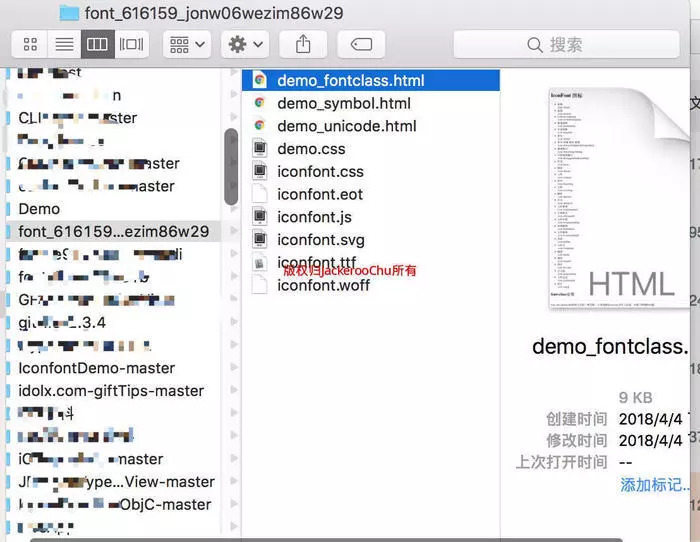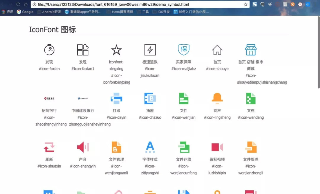 2. 所有需要的unicode编码都可以在下载的iconfont文件夹中的.html文件打开查看
