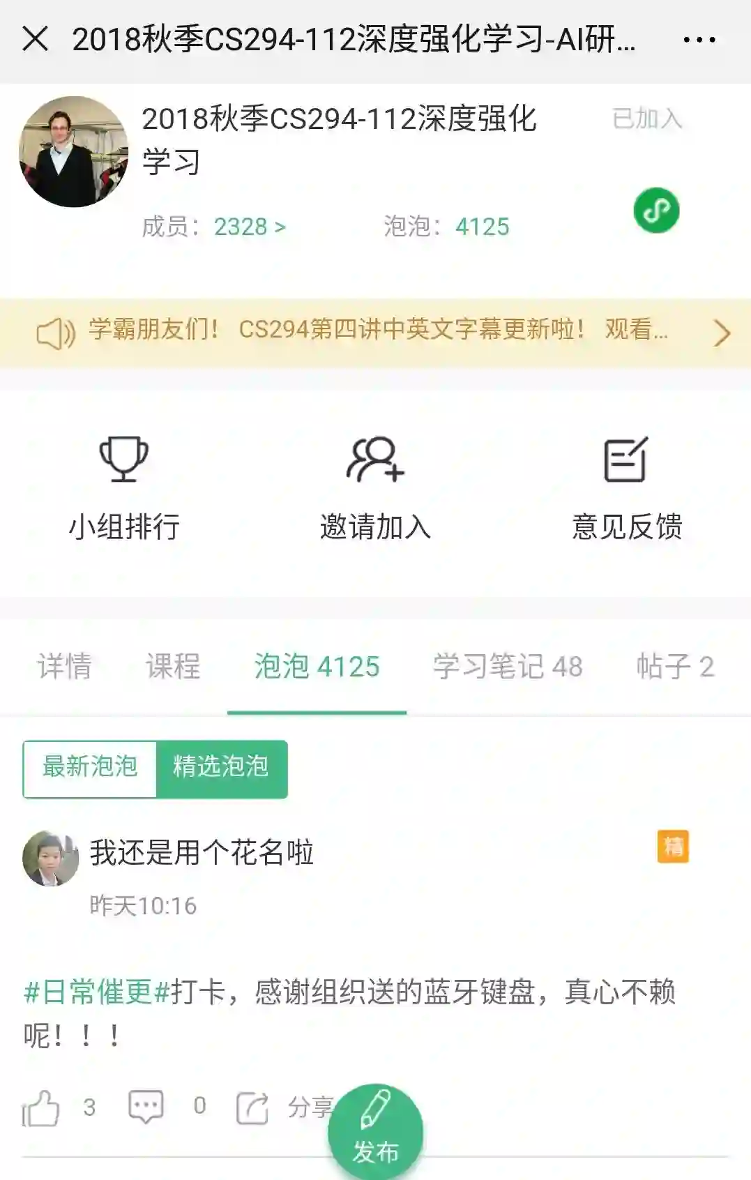 点开小组小程序,加入2018秋季CS294-112深度强化学习小组