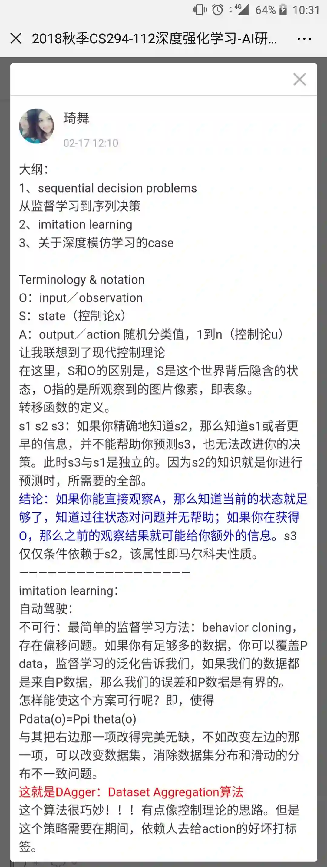 侧重于增强学习与深度学习相结合,应用在机器人方面的例子比较多,翻译的话老师语速挺快的,虽然语气词比较多,整体逻辑很清晰。