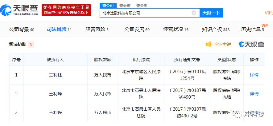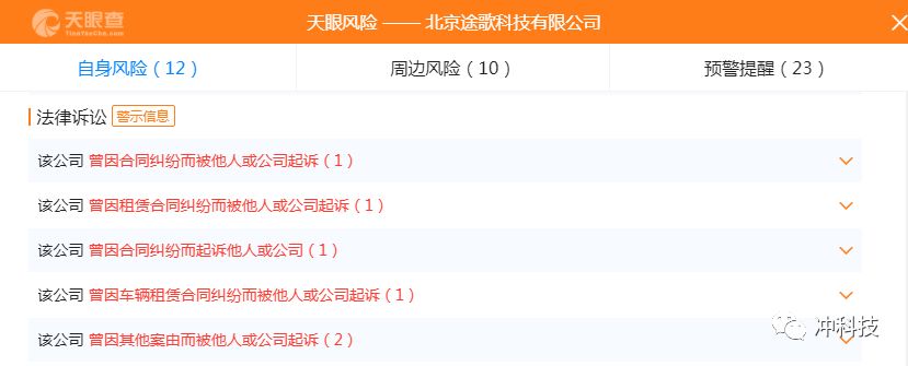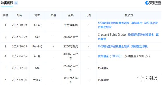 冲科技查询天眼查后发现,途歌公司注册于2015年7月,法定代表人王利峰为最大股东,占股74.8%,途歌共有6次融资历史,融资总额超8亿人民币。