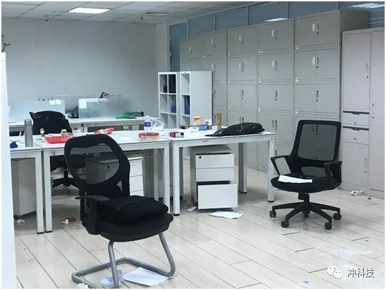 一位物业人员告诉冲科技,途歌已经办理退租,仅剩的几个工作人员搬到了同楼层走廊尽头。途歌公司的“临时安置点”过去也曾是途歌办公室,据了解,过去途歌共租有3个办公室,其余两间退租后,最后一间办公室则沦为仓库间,屋内一片狼藉,文件、物资等四处散布。