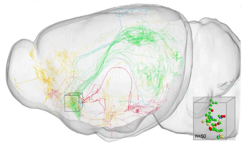 ► 50个基底前脑乙酰胆碱能神经元的完整形态,图片来自PNAS