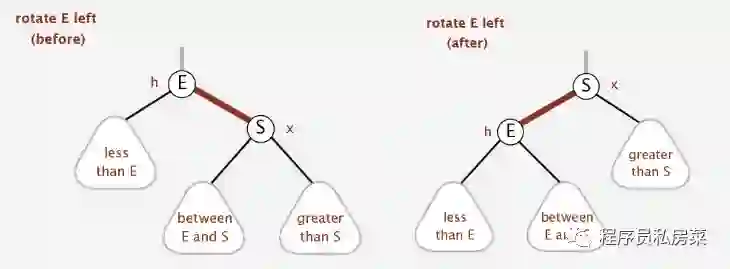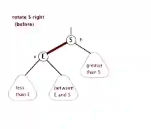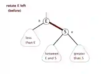 通常左旋操作用于将一个向右倾斜的红色链接旋转为向左链接。示意图如下: