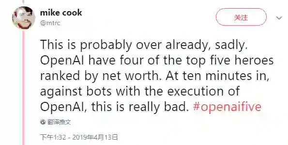 这次比赛,OpenAI Five的表现出是迄今为止展示出的最高水平:人类对手去年赢得了世界上最令人垂涎的电子竞技赛事TI8的冠军;OpenAI Five在去年输掉比赛后进行了优化,训练时间相当于人类玩了4.5万年,赢得比赛也并不出乎意料。