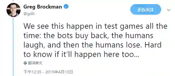 对此,OpenAI首席技术官Greg Brockman指出,OpenAI喜欢有利于短期收益的战略,说明在长期规划上不如人类,而且DOTA2这种游戏通常要依赖于长期规划才能获胜。然而,在这场比赛中,这种早期的买活策略得到了回报,OpenAI Five获得了优势,当比赛拖入30分钟时,OG顶不住了。